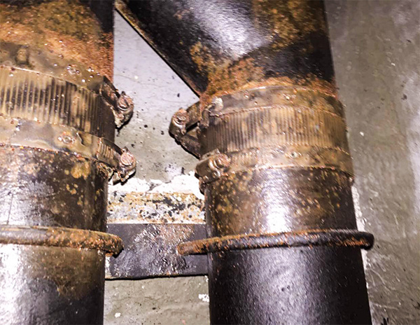 除了管材管件應(yīng)該符合國(guó)家標(biāo)準(zhǔn)以外,***重要的就是連接配件,市面上數(shù)不清的小廠卡箍以假亂真,用肉眼根本無法識(shí)別,如果黑心的商家選用了劣質(zhì)200系列材質(zhì)的卡箍后果不堪設(shè)想,不僅極易被腐蝕,而且容易斷裂。如上圖所示,僅僅使用了10個(gè)月的201材質(zhì)卡箍出現(xiàn)了腐蝕、斷裂的情況。